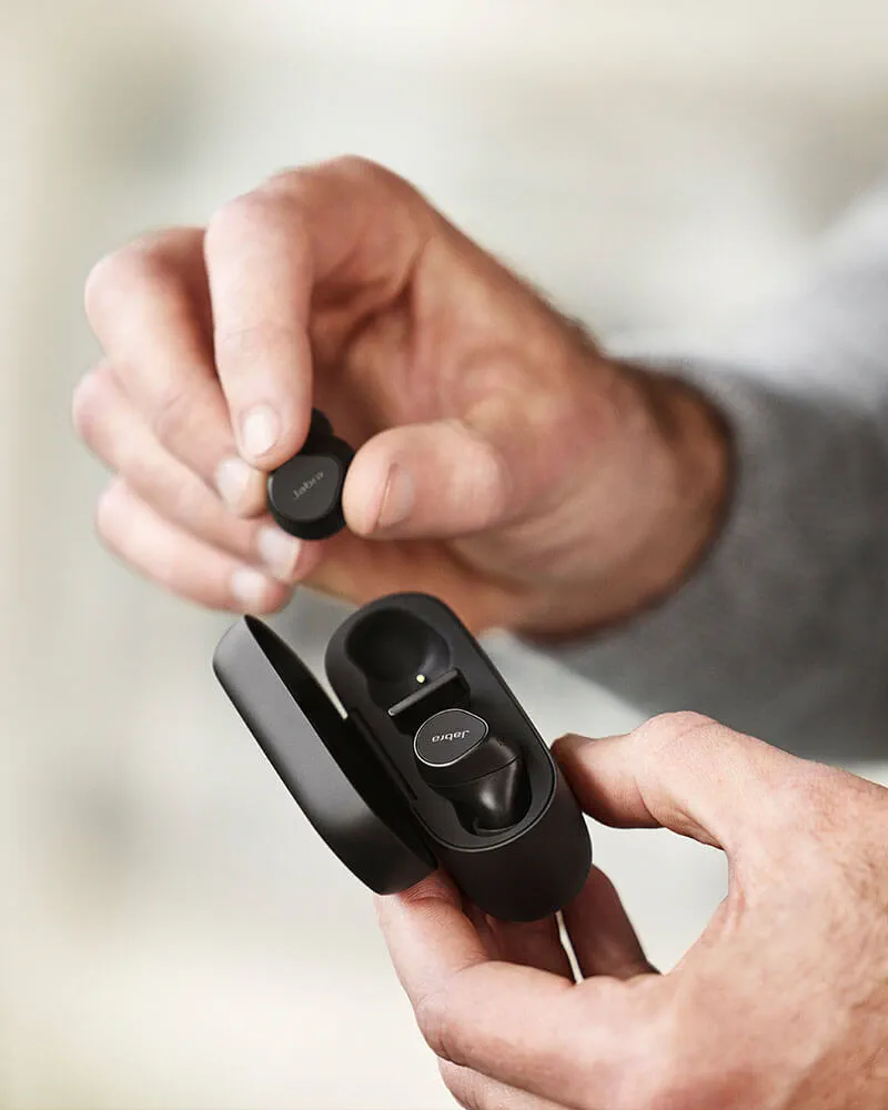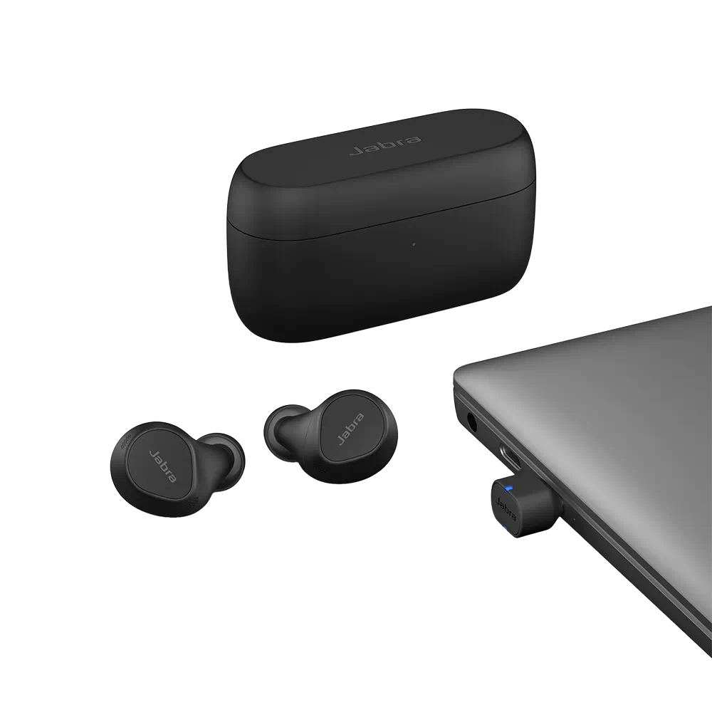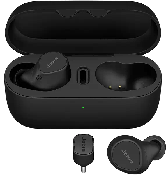 JABRA EVOLVE2 Buds. The Jabra Evolve2 Buds are premium true wireless earbuds designed for clear calls and immersive audio. With dual-microphone technology and noise-cancelling features, they ensure crystal-clear voice quality even in noisy environments. Ideal for professionals, they offer seamless connectivity, comfort, and up to 25 hours of battery life. Compact and portable, these earbuds are perfect for on-the-go meetings, calls, and media.