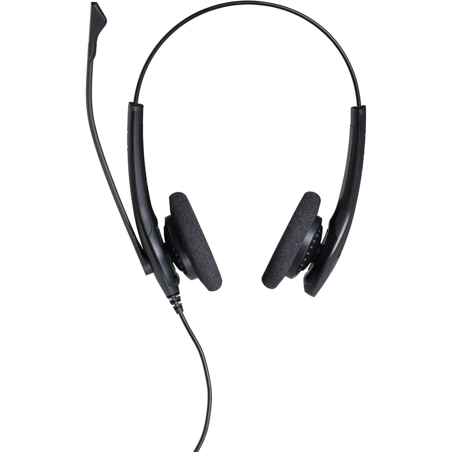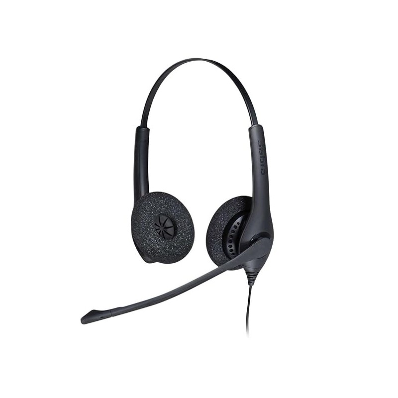 JABRA Biz 1500 Stereo. The Jabra BIZ 1500 Stereo is an entry-level, professional corded headset designed for cost-conscious contact centers. It features a noise-canceling microphone that reduces background noise, ensuring clear and professional customer interactions. The headset is built for durability, with a 270° flexible spin boom arm that can be rotated without the risk of breaking. Its lightweight, ergonomically designed frame, padded headband, and soft foam ear cushions provide all-day comfort for users. Additionally, the BIZ 1500 offers flexible connectivity options, including USB and Quick Disconnect (QD) variants, ensuring compatibility with various devices and platforms.