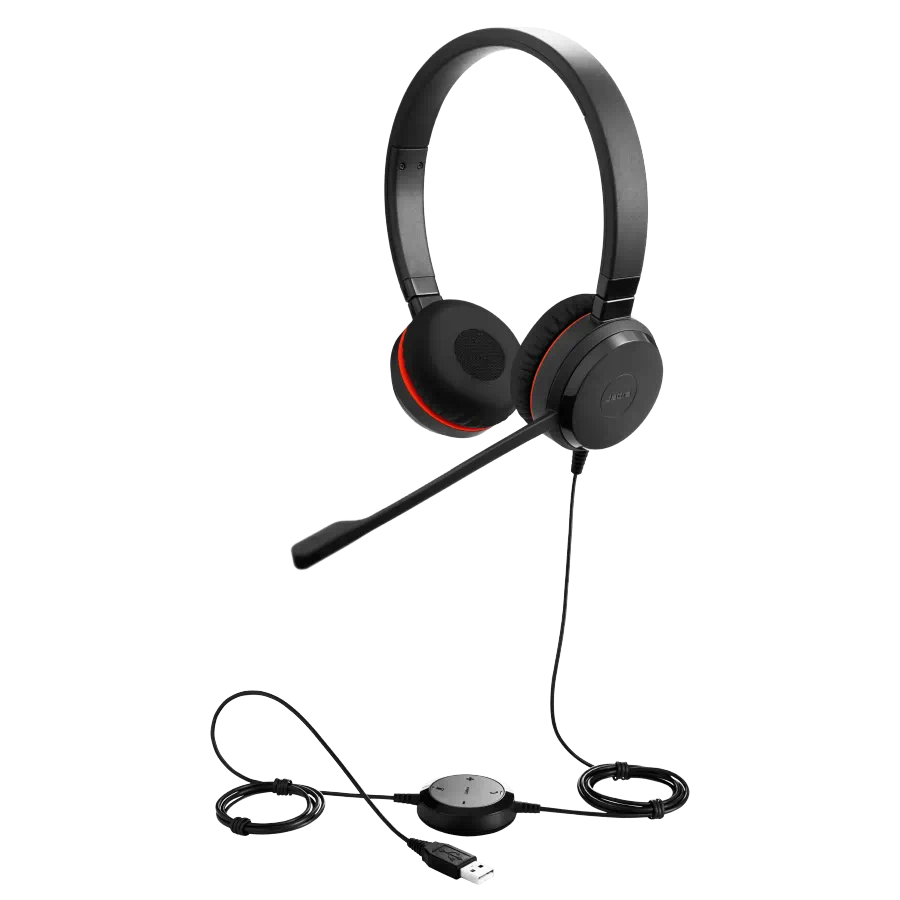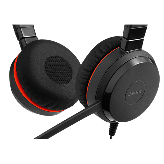 JABRA EVOLVE 30 Stereo. The Jabra Evolve 30 is a professional wired headset designed to enhance communication and productivity in office environments. It offers flexible connectivity options, allowing users to connect via USB or a 3.5mm jack, making it compatible with PCs, smartphones, and tablets. The headset features a noise-canceling microphone that effectively reduces background noise, ensuring clear conversations. Its comfortable design includes soft ear cushions for extended wear, and the in-line call controller provides easy access to volume and mute functions. The Evolve 30 is available in both mono and stereo versions to suit individual preferences. It is also certified for leading Unified Communications platforms, ensuring seamless integration for professional use.